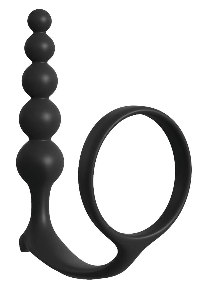 Dehnbarer Penisring mit fest arretiertem Kugel-Analplug. Der Penisring nimmt den Penis fest in die Zange und kann seine Erektion dank Blutstau-Effekt wirkungsvoll unterstützen. Gleichzeitig sorgt der eingeführte Analplug für intensive Stimulationen im Hinterstübchen. Der flexible Verbindungssteg schmiegt sich dabei hautnah ans Perineum, sodass auch hier für Genuss gesorgt ist. Für unnachahmliche Feelings!