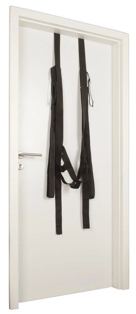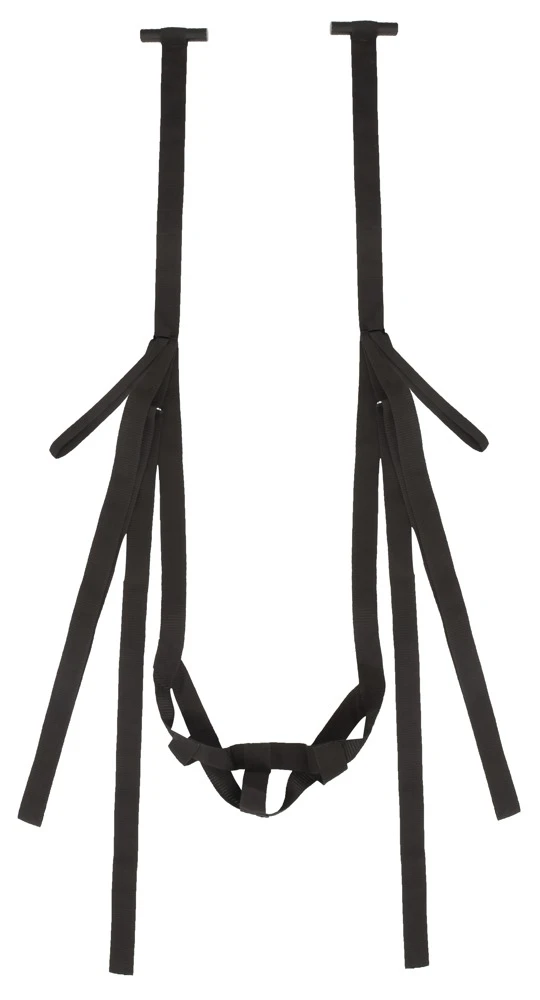 Türschaukel door swing von Bad Kitty mit Sitzgurt, Hand- und verstellbaren Fußschlaufen. Die Liebesschaukel wird einfach über die geöffnete Tür gehängt und mit ihren robusten Holzstoppern arretiert, indem die Tür geschlossen wird. Alle Gurte und Schlaufen aus reißfestem Webmaterial. Belastbar bis 100 kg lt. Empfehlung des Herstellers.