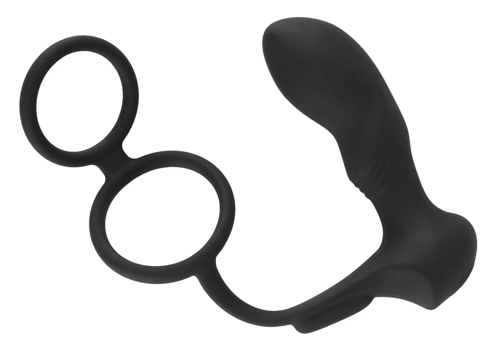 Double Ring & Plug with vibration von Black Velvets ist ein dehnbarer, kombinierter Penis-/Hodenring mit fest arretiertem Vibro-Analplug, der über die kabellose Fernbedienung bequem steuerbar ist – mit einer Reichweite von 6 Metern auch vom Partner. Die Ringe nehmen Penis und Hoden fest in die Zange und können seine Erektion dank Blutstau-Effekt wirkungsvoll unterstützen. Gleichzeitig sorgt der eingeführte Vibro-Analplug mit seinem speziellen P-Punkt-Design und 10 abwechslungsreichen Vibrationsmodi für intensive Stimulationen im Hinterstübchen. Der flexible Verbindungssteg schmiegt sich dabei hautnah ans Perineum und stimuliert zusätzlich. Auch unter der Kleidung diskret und dauerhaft tragbar. Für unnachahmliche Feelings – nicht nur beim Sex – auch im Alltag! Mit Tastensperre.