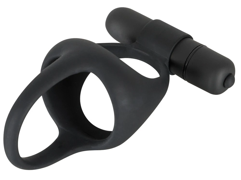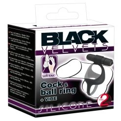 Dieser kombinierte Penisring Vibrating cock & ball ring von Black Velvets überzeugt mit reizvollem Hodenteiler und leistungsstarkem Vibrobullet, das herausnehmbar ist. Aus Silikon mit samtig seidiger Textur für höchsten Tragekomfort. Inklusive Batterie.