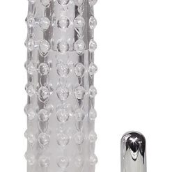 Transparente, ausgeprägt geäderte Penishülle/sleeve mit Hodenring von Crystal Clear bringt den Penis ruckzuck in Topform. Die eng sitzende, innen aufregend genoppte Hülle aus weichem Stretchmaterial wird einfach über das erigierte Glied gestreift. Der integrierte Hodenring sorgt für festen angenehmen Sitz ohne Abrutschen. Dank des prächtigen Außendurchmessers und der Materialstärke ist der Penis im Umfang deutlich vergrößert. Und die massive Eichel verlängert um satte 8 cm!