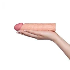 Mit ausgeprägter Eichel und Äderung und aus seidig softem Silikon gefertigt, schmiegt sich die rundum elastische Sleeve jedem Penis hautnah an. Dank des prächtigen Außendurchmessers wird der Penis im Umfang um 66% vergrößert und um 7,1 cm verlängert. Die softe Verlängerung ist aus der Sleeve herausnehmbar.