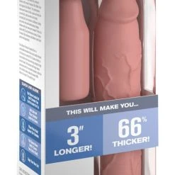 Mit ausgeprägter Eichel und Äderung und aus seidig softem Silikon gefertigt, schmiegt sich die rundum elastische Sleeve jedem Penis hautnah an. Dank des prächtigen Außendurchmessers wird der Penis im Umfang um 66% vergrößert und um 8,9 cm verlängert. Die softe Verlängerung ist aus der Sleeve herausnehmbar.