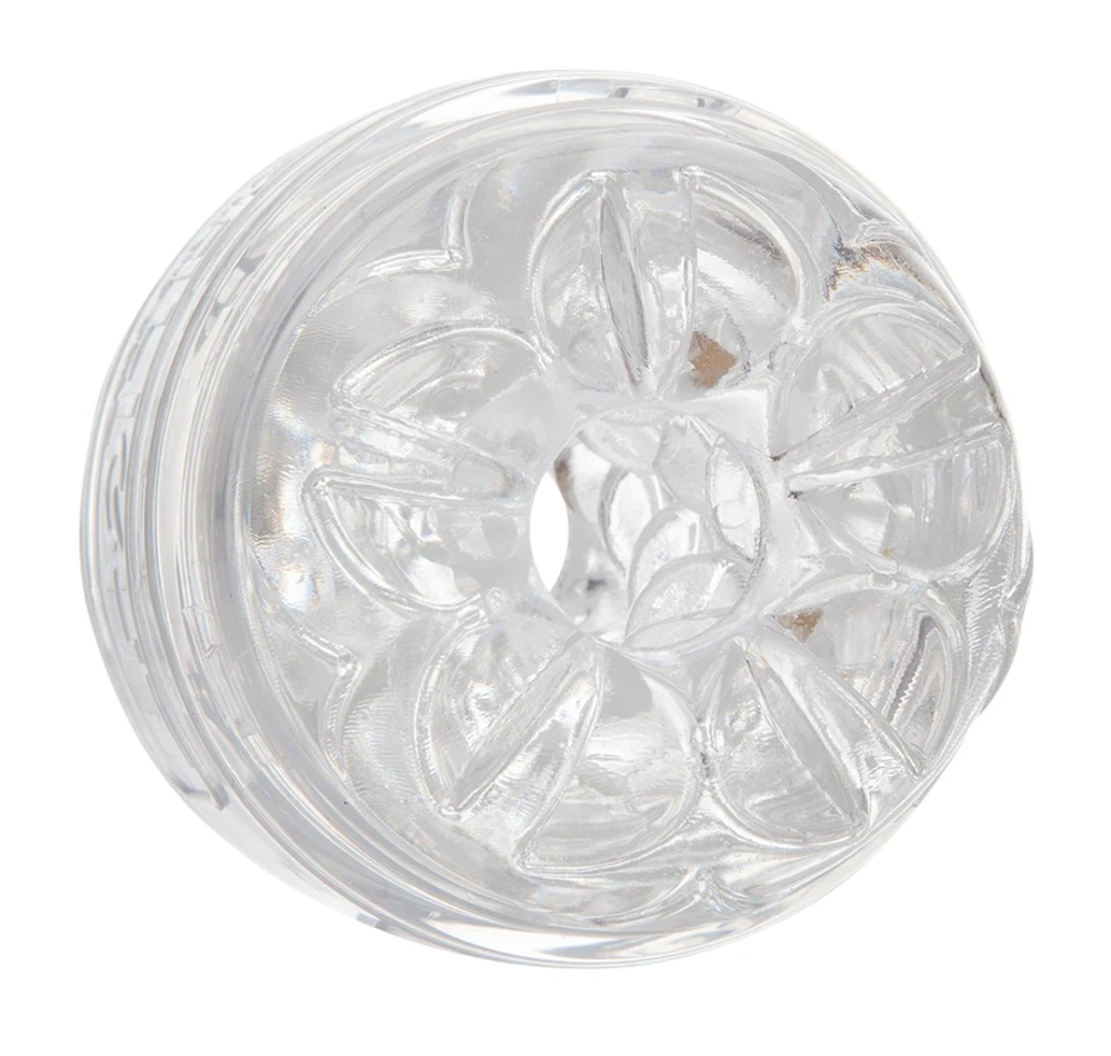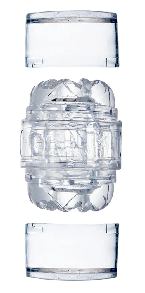 Transparenter Masturbator aus Super Skin-Material mit strukturiertem Innenleben. Beidseitig offen – perfekt für den längeren Penis. Nur halb so groß wie die anderen Fleshlight-Masturbatoren: 8,8 cm lang, Ø 1,8 cm, dehnbar. Inklusive transparenter Aufbewahrungsbox.