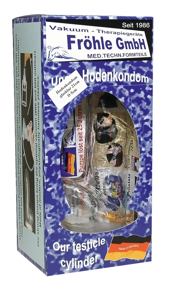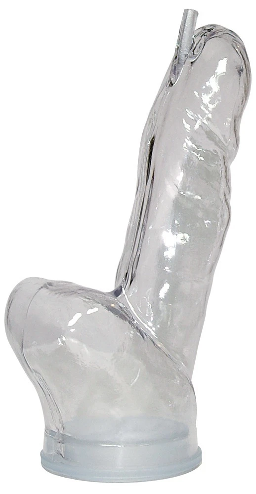 SP008 Realistischer Peniszylinder L glasklar von Fröhle aus festem Polycarbonat mit Anschluss oben. In anatomischer Penisform – nimmt zusätzlich die Hoden in den Saugzylinder auf. In Kombination mit einer Vakuumpumpe (inkl. Anschlussschlauch und Druckregulierer) von Fröhle anzuwenden. Inklusive PVC-Steckmanschette (austauschbar).