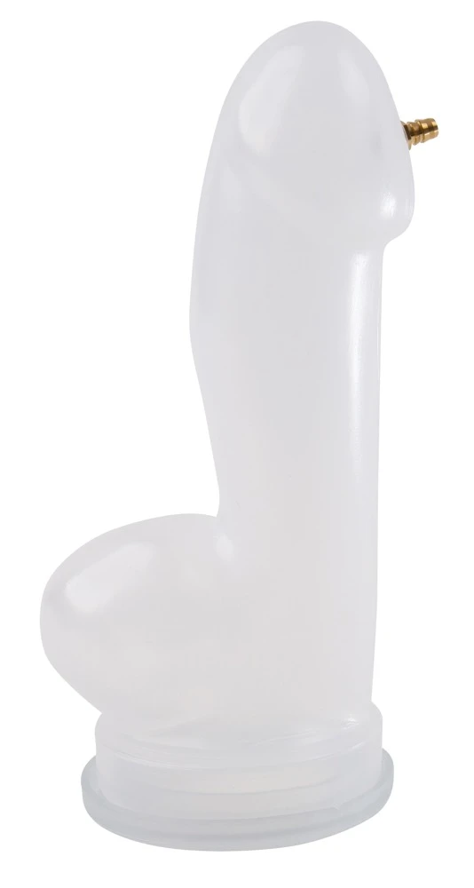 SP010 Realistischer Peniszylinder XL transparent von Fröhle mit Anschluss oben. In flexibler anatomischer Penisform – nimmt zusätzlich die Hoden in den Saugzylinder auf. In Kombination mit einer Vakuumpumpe (inkl. Anschlussschlauch und Druckregulierer) von Fröhle anzuwenden. Inklusive PVC-Steckmanschette (austauschbar).