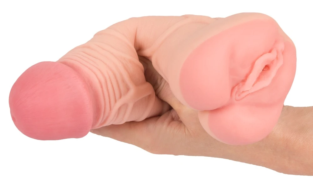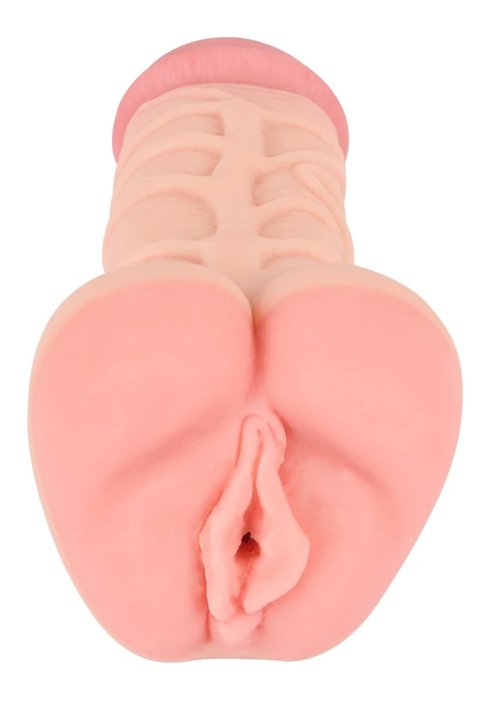 Masturbator in Vagina-Optik mit Lusttunnel in Penis-Optik aus hautähnlichem Nature Skin-Material. Der Lusttunnel ist außen ausgeprägt geädert und am Ende mit praller Eichel versehen. Innen sorgt eine ausgeprägten Reizstruktur für eine intensive, orgasmuswirksame Massage des eingeführten Penis. Der Druck kann für ein herrlich zupackendes Feeling beim Handjob, dank des weichen Materials, spielend einfach variiert werden. Der Masturbator ist auch als Penis-Sleeve zur Verlängerung und Verdickung des eigenen Penis geeignet.