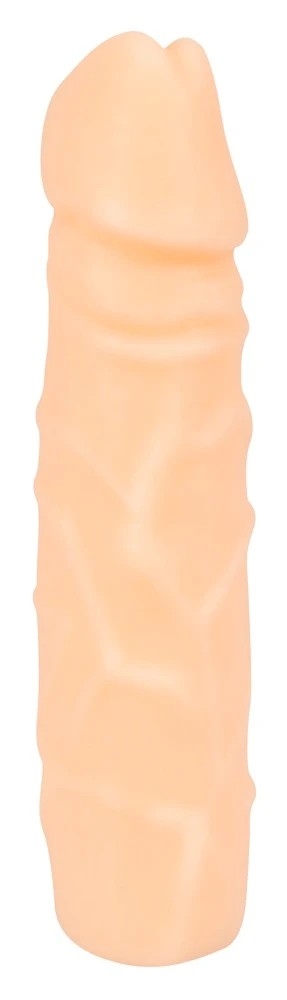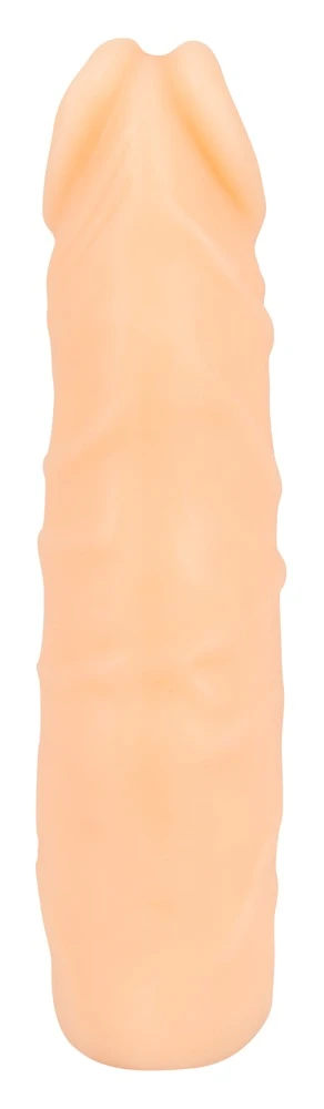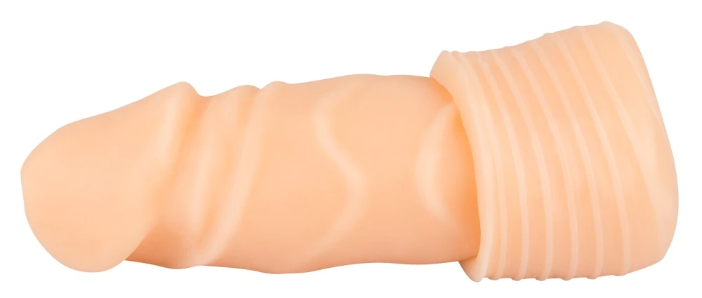 Die dehnbare Sleeve ist aus weichem Stretchmaterial (Nature Skin) gefertigt, das aussieht wie echte Haut und sich auch genauso streichelzart anfühlt. Mit ihren ausgeprägten Innenrillen schmiegt sie sich eng und rutschfest an den Penis und kann durch diesen angenehm festen Sitz die Erektion wirkungsvoll unterstützen.
