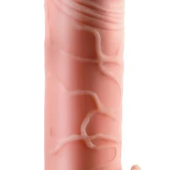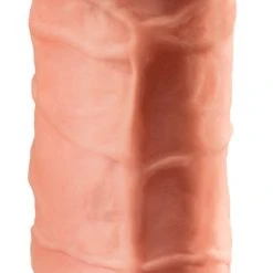 Penishülle aus dem hautähnlichen Nature Skin-Material. Gesamtlänge 15,5 cm (davon 3 cm Verlängerung), Innen-Ø 2 cm (sehr dehnbar), Außen-Ø 4 cm. TPR.