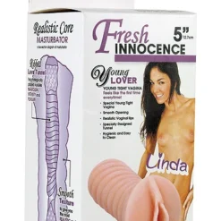 Linda aus der Fresh Innocence Serie ist ein Masturbator aus softem, gleitfreudigem Loveclone RX Material. Einladend realistische Schamlippen, sowie Reiznoppen und Rillen im Inneren des Lusttunnels stimuliern und massieren den Penis intensiv und orgasmuswirksam. Bestehend aus Loveclone RX, einem Material, das der menschlichen Haut in Weichheit und Elastizität sehr nahe kommt, sieht Linda nicht nur echt aus, sondern fühlt sich auch so an. Die äußere spiralförmige Rillenstruktur ist besonders griffig und macht die Handhabung sehr einfach.