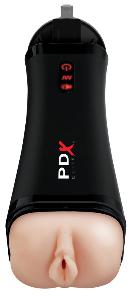 Der PDX ELITE Talk-Back Super Stroker hat eine naturgetreue Vagina-Öffnung und einen Lustkanal mit stimulierenden Reizrillen. Seine Textur besteht aus hochwertigem Fanta Flesh-Material. 10 aufregende Vibrationsmodi machen das Vergnügen komplett. Für die freihändige Stimulation bietet der Masturbator einen Saugfuß mit verstellbarem Winkel. Seine Textur kann zur Reinigung aus der Hülle genommen werden. Der PDX ELITE Talk-Back Super Stroker ist mit dem beiliegenden USB-Kabel wiederaufladbar. Mit Kopfhörern nutzbar (nicht enthalten).