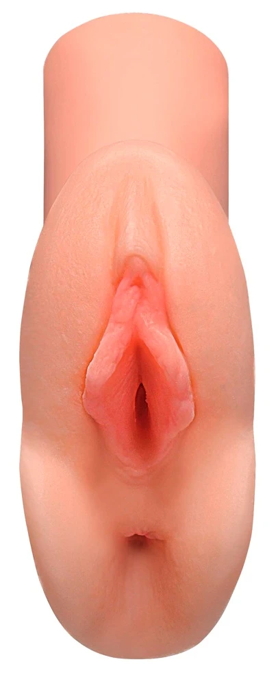 Handlicher Masturbator in lebensechter Vagina-/Anus-Optik. Die Lusttunnel aus hautähnlichem Fanta Flesh-Material sind innen mit ausgeprägt strukturierten Stimulationsrillen versehen, die für eine intensive, orgasmuswirksame Massage beim Handjob sorgen. Der Druck kann für ein herrlich zupackendes Feeling spielend einfach variiert werden. Zudem sorgt das geschlossene Tunneldesign für einen aufregenden Saugeffekt. Die beiden Lusttunnel sind für die einfache Reinigung miteinander verbunden.