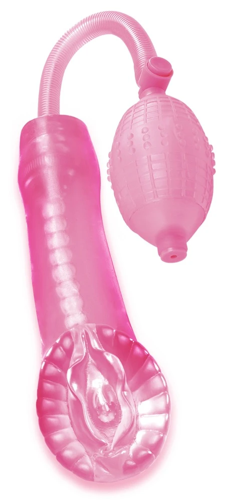 Penispumpe in Vagina-Optik mit Pumpball und Sicherheitsventil. Der strukturierte Lustkanal sorgt für einen rutschfesten Halt und zusätzliche Stimulation. Für alle Männer, die sich ein effektives Potenz-Training wünschen. Mit angenehm saugender Stimulation – ähnlich wie beim Blow-Job.