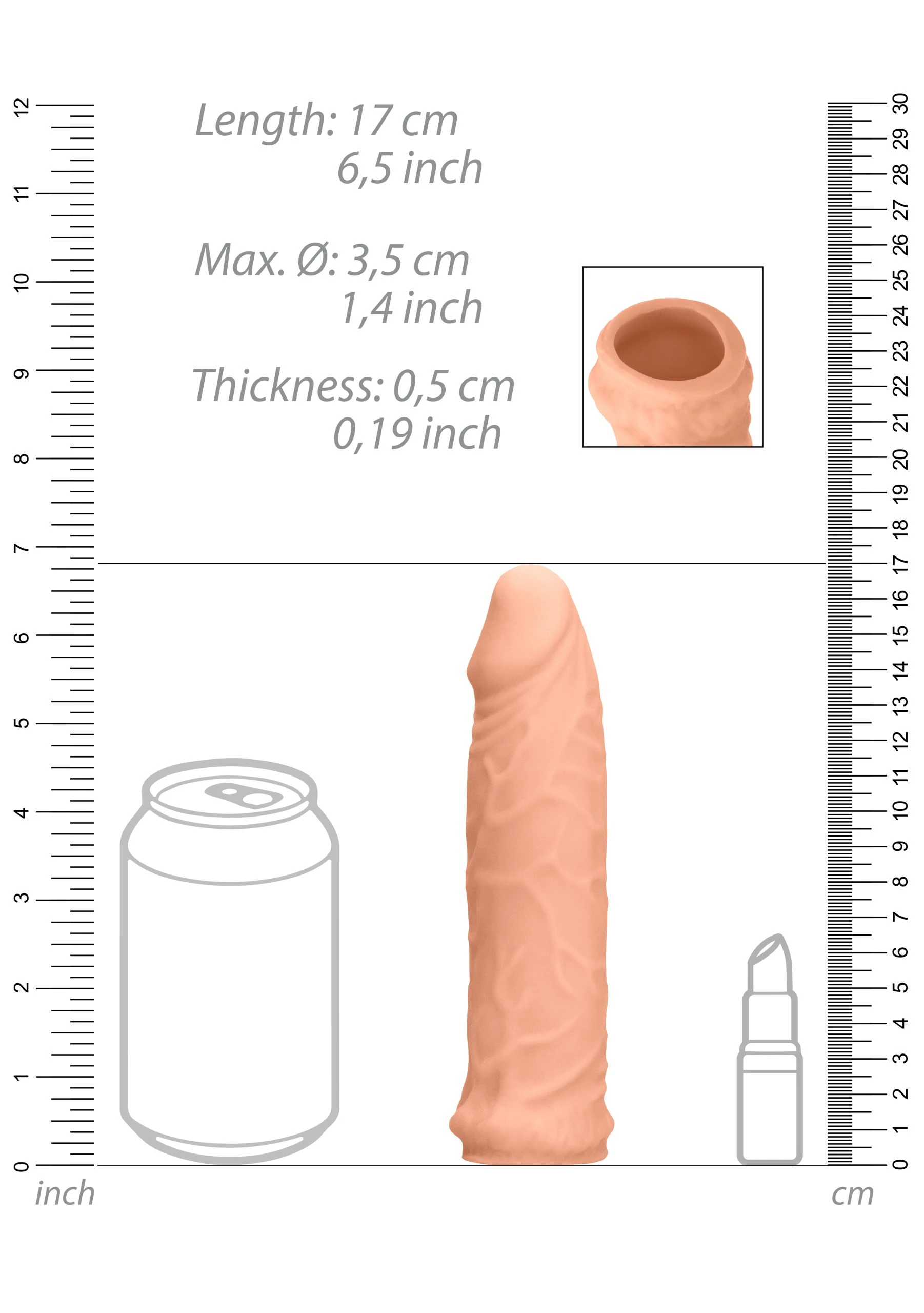 Mit der Peniserweiterung Skin by Shots wird Ihr Penis zu einer unglaublichen Vergnügungsmaschine. Seien Sie ein Mann, der alle Partner befriedigt! Mit dieser lebensechten Peniserweiterung (verlängert um ca. 6 cm) können Sie sich selbst und Ihren Partner mit mehr Länge, Weite und länger andauernder Erektion verwöhnen. Führen Sie Ihren Penis einfach in den bequemen, hohlen Schaft, der in der Innenseite mit erregenden Vergnügungsnoppen – die für intensives Vergnügen sorgen – ausgestattet ist. Das natürliche Aussehen erfüllt alle Ihre Fantasien und das weiche Material liegt fest und bequem in der Hand. Für intensive Stimulation sorgen die ausgeprägte Äderung und die perfekt geformte Eichel.