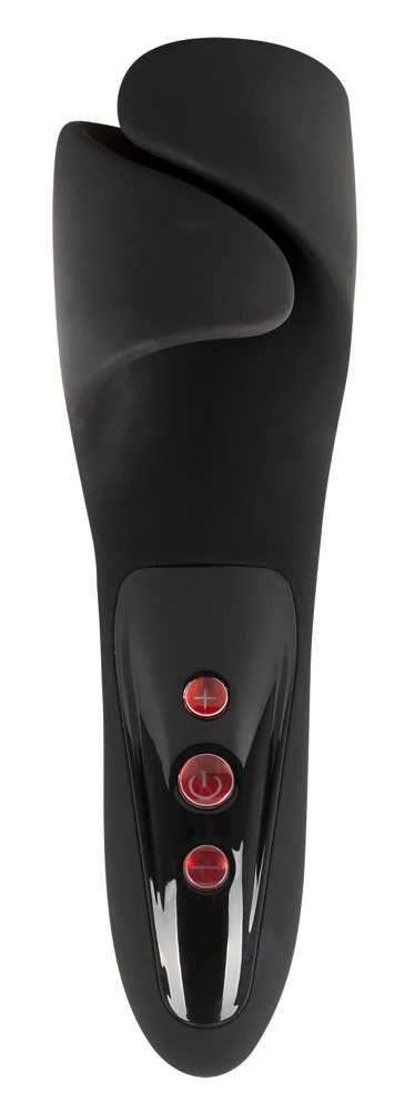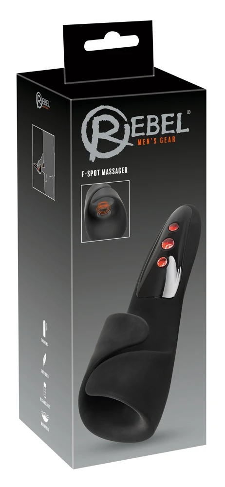 Handlicher Masturbator F-Spot Massager von Rebel mit flexiblen Flügeln, die den Penis fest umschließen. Grandiose Stimulation mit 10 Vibrationsmodi in 3 Geschwindigkeiten und einer pochend-pulsierenden Klopf-Funktion direkt am empfindlichen Frenulum (Penisbändchen) für intensive Orgasmen – auch bei Erektionsstörungen.