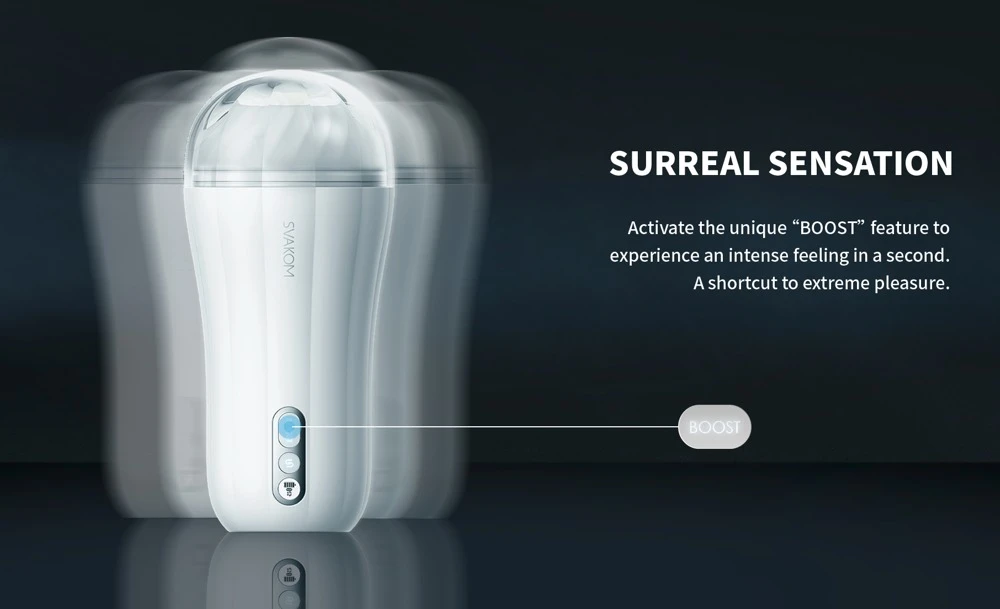 Hochleistungs-Masturbator Robin von Svakom, der den Penis mit 5 außergewöhnlichen Vibrationsmodi in einer perfekten Kombination aus Kraft und Bewegung intensiv verwöhnt. Dazu die einzigartige Boost-Funktion, die einfach per Knopfdruck aktiviert wird, um blitzschnell einen intensiven Höhepunkt zu erreichen. Die praktische LED-Anzeige zeigt dabei die verschiedenen Modi und zusätzlich den Akkustand an.