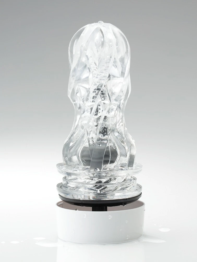 Transparenter Masturbator in diskretem Design-Gehäuse mit innovativem Drehmechanismus zur Steuerung der Saugkraft in 10 Leveln für ein individuelles Blowjob-Erlebnis. Drehen im Uhrzeigersinn erhöht die Saugkraft, das Drehen in die entgegengesetzte Richtung senkt sie wieder. Die stimulationsintensiv mit spiralförmigen Details strukturierte Sleeve mit integriertem Penisring kann zur einfachen Reinigung entnommen werden, das Gehäuse dient dann als praktischer hygienischer Trocknungsständer.