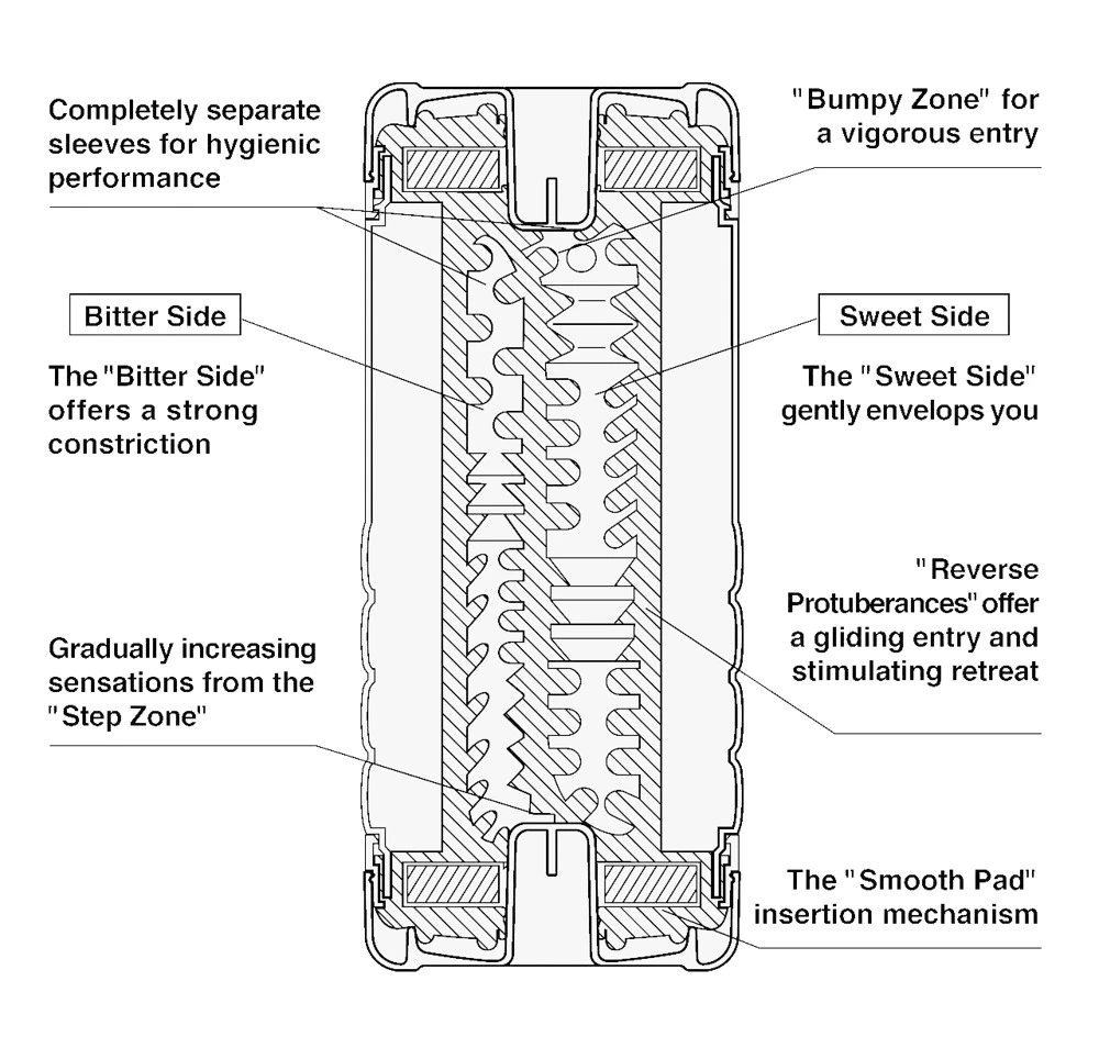 Beidseitig verwendbarer Masturbator Dual Sensation Cup von Tenga im diskreten Cup mit aufregend strukturierten Lustkanälen, die sich ineinander verdrehen und verflechten für einzigartige tiefgehende Empfindungen. Die eine Seite verwöhnt sanft und behutsam, die andere Seite stimuliert intensiv und zupackend.