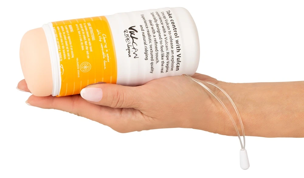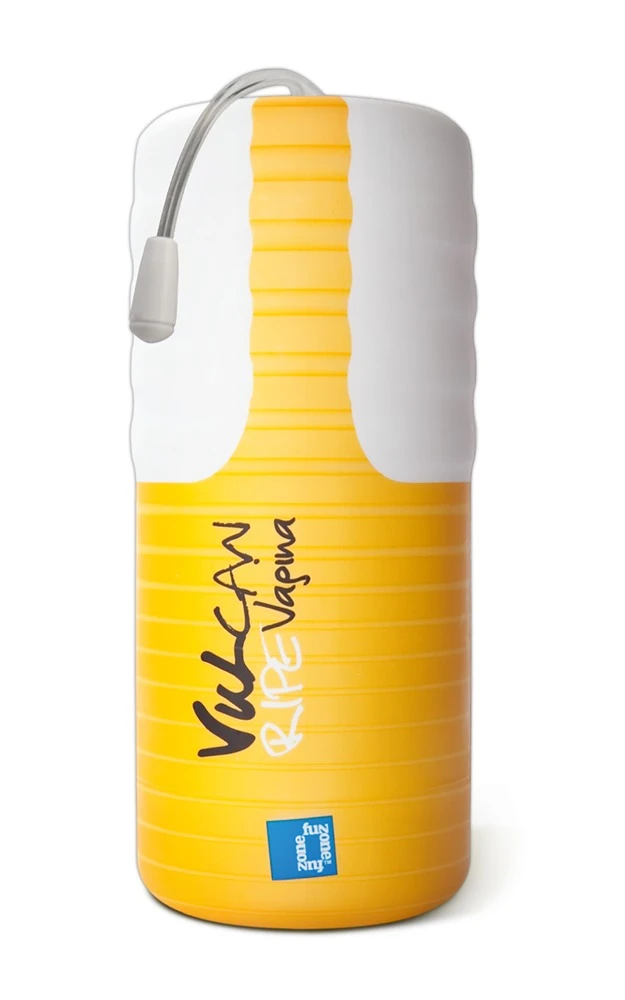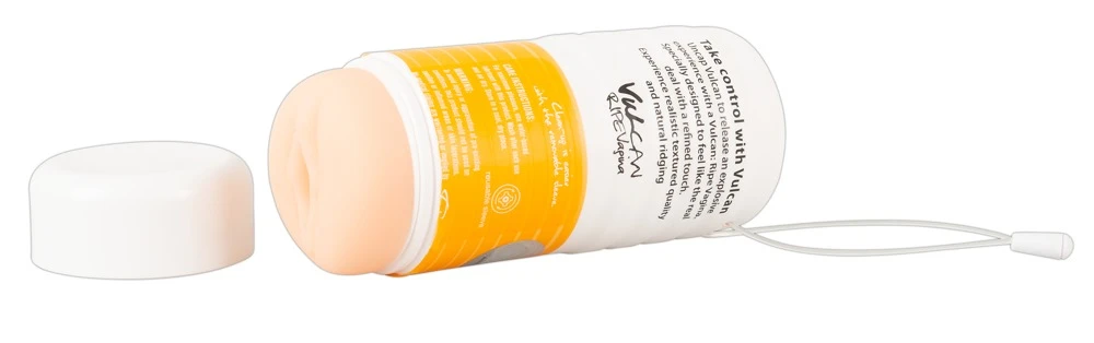 Masturbator Vulcan Ripe Vagina in diskretem, griffigem Gehäuse (Dose). Der Lustkanal aus seidig softem Material ist innen mit ausgeprägt strukturierten Stimulationsrillen versehen, die für eine intensive, gefühlsechte Massage beim Handjob sorgen.