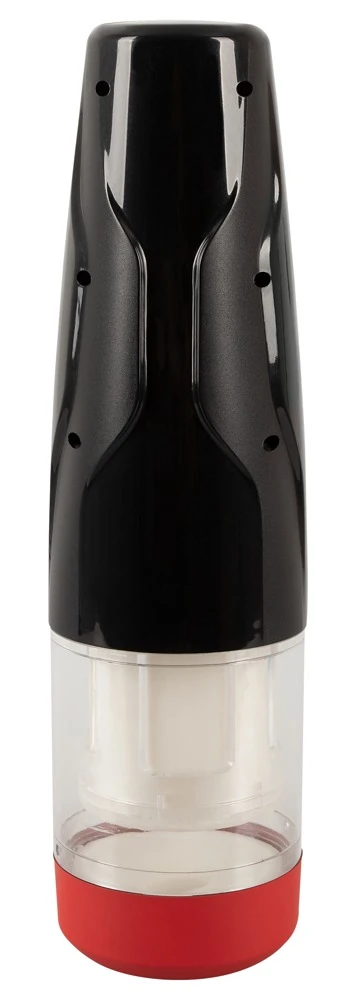 Kräftiger Masturbator 05 von WYNE, der den Penis in der sich links und rechts herum rotierenden Sleeve mit Stoßfunktion (10 Modi) rundum verwöhnt – ganz bequem per Knopfdruck. Durch den – auf Wunsch – mit rotem LED-Licht beleuchteten Transparent-Zylinder kann alles erregend beobachtet werden. Dazu unterstreicht sexy gehauchtes Stöhnen (3 Modi) das Real-Erlebnis, das man mit den beiliegenden Kopfhören diskret genießt.