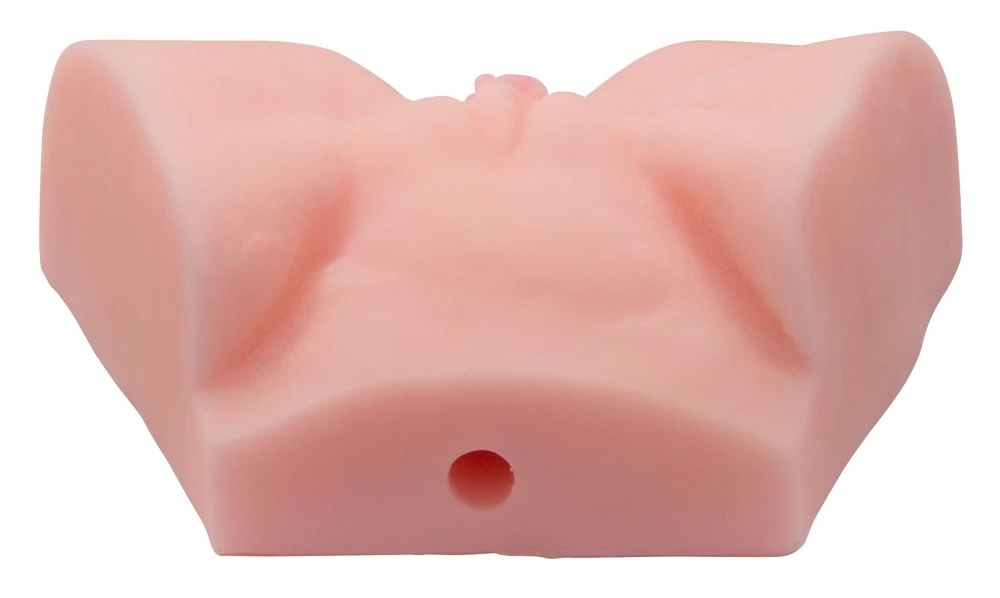 Sinnlicher Masturbator mit Anus- und Vagina-Öffnung. Aus hautähnlicher Textur, mit dehnbarem Lustkanal und ausgeprägten Schamlippen. Eine zusätzliche Öffnung erleichtert die Reinigung.