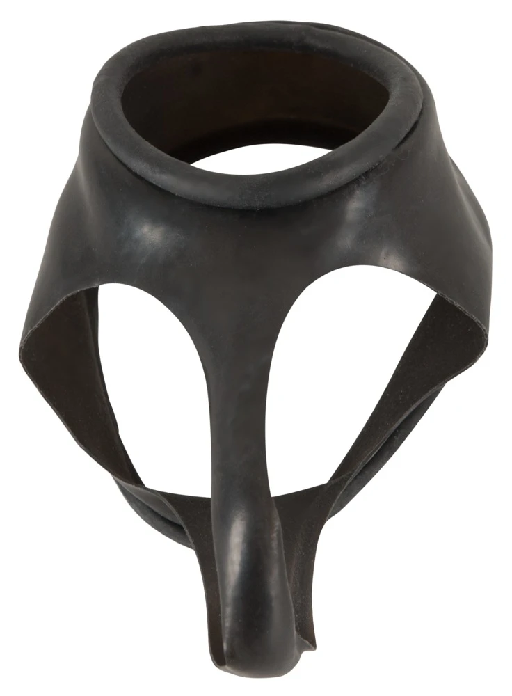Diese eng sitzende Penis-Manschette von You2Toys aus schwarzem Latex hält das beste Stück lange in Hochform, während der Hodenteiler wie eine knetende Hand für irre Zusatzreize sorgt.